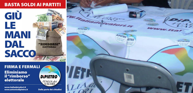 Cronaca 20 Apr 2012 'Giù le mani dal sacco', l'Idv raccoglie firme in Corso Campi contro i rimborsi elettorali