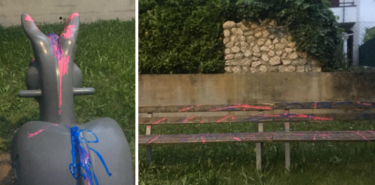 Cronaca 10 Mag 2018 Vandali al parco di Casanova del Morbasco: imbrattati panchine e giochi dei bimbi