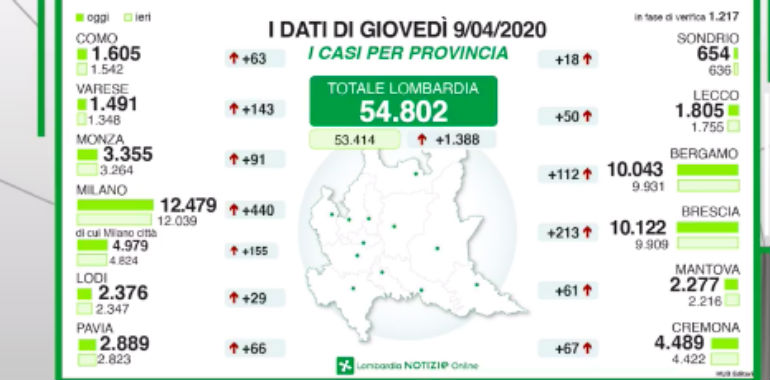 Cronaca 07 Apr 2020 Rallenta ancora la crescita dei contagi in Regione; in prov. di Cremona 63 nuovi casi da ieri