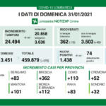 Cronaca 16 Gen 2021 Coronavirus, 38 nuovi casi in provincia. In Regione l'indice di contagio scende a 6%
