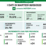 Cronaca 13 Set 2020 Covid, 8 casi in provincia di Cremona. In Regione sale al 2% percentuale dei positivi