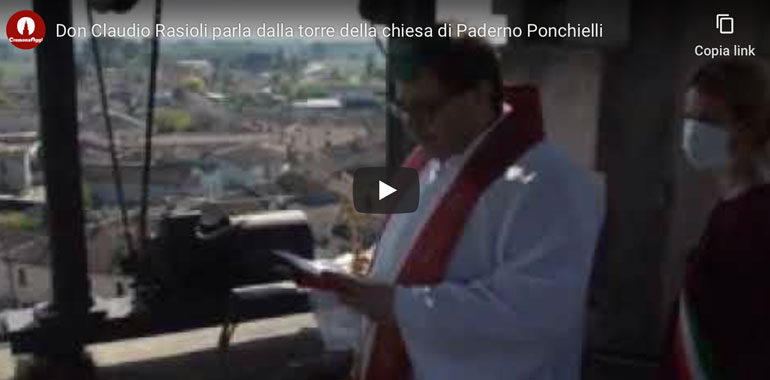 Chiesa 26 Apr 2020 Don Claudio Rasoli, parroco di Paderno Ponchielli, parla dal campanile della chiesa
