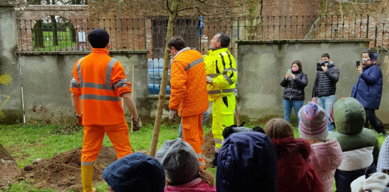 Cronaca 19 Feb 2021 Nuovo albero nel giardino dell'asilo S. Giorgio: dono dei genitori della sezione mezzani