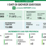 Cronaca 25 Lug 2020 Nessun nuovo positivo sul territorio. In Lombardia 0 decessi per il secondo giorno
