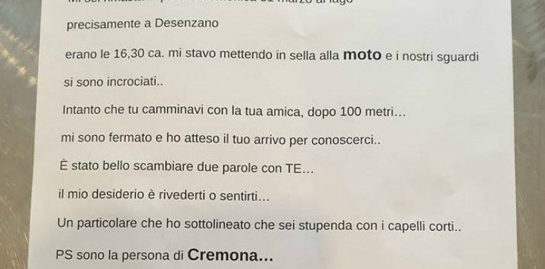 Cronaca 02 Apr 2019 Stregato da donna di Rezzato, cremonese riempie il paese di volantini per ritrovarla
