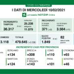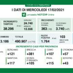 Cronaca 17 Feb 2021 Covid, 57 casi in provincia. In regione giù di 10 le terapie intensive, indice contagio 4,6%