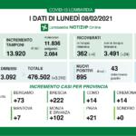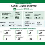 Cronaca 19 Feb 2021 Covid, 100 casi in provincia, in regione 3.724 nuovi positivi L'indice di contagio è al 7,1%