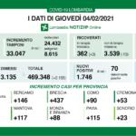 Cronaca 03 Feb 2021 Covid, 61 casi in provincia. In regione aumento dei positivi, indice di contagio al 4,4%