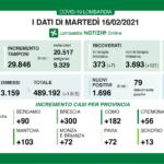 Cronaca 16 Feb 2021 Covid, 56 casi in provincia. In regione ricoveri in aumento, scende a 5,6 indice contagio