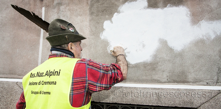 Cronaca 27 Ott 2016 Alpini ancora al lavoro per ripulire i muri imbrattati: è la volta della R.Colombo