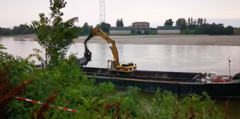 Ambiente 16 Lug 2020 Alcuni dei detriti rimossi dal ponte in ferro incagliati all'attracco di San Daniele Po